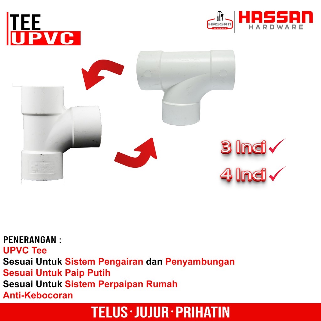 Paip Upvc Tee Pelbagai Saiz Tersedia 3 Inci 4 Inci Shopee Malaysia