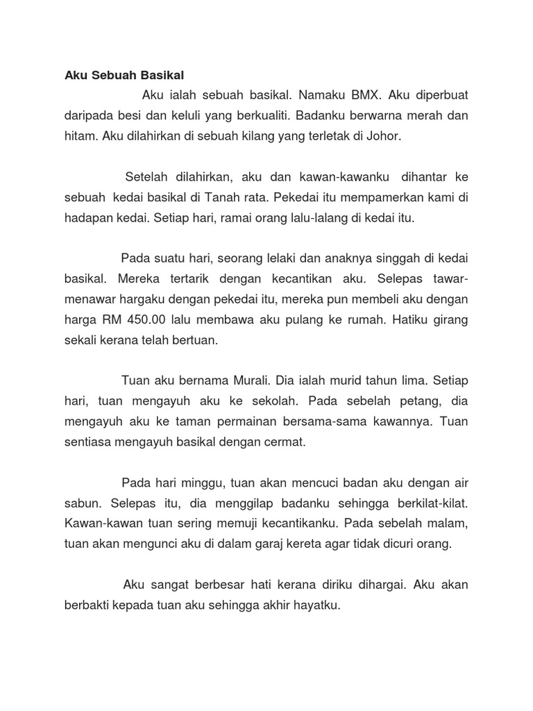 Saya _________________ di sebuah kilang membuat basikal di Shah. Contoh karangan bahasa malaysia sk dan sjkc tahun 456 upsr karangan jenis autobiografi 4 tulis sebuah karangan yang bertajuk aku sebuah basikal. Surface Studio vs iMac Which Should You Pick.